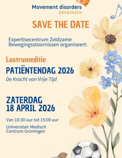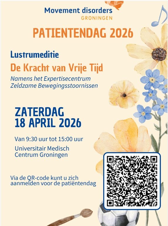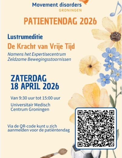 Hierbij de uitnodiging voor de patiëntendag: Bewegen met veerkracht. Georganiseerd door het Movement Disorders Groningen op zaterdag 25 mei 2024.